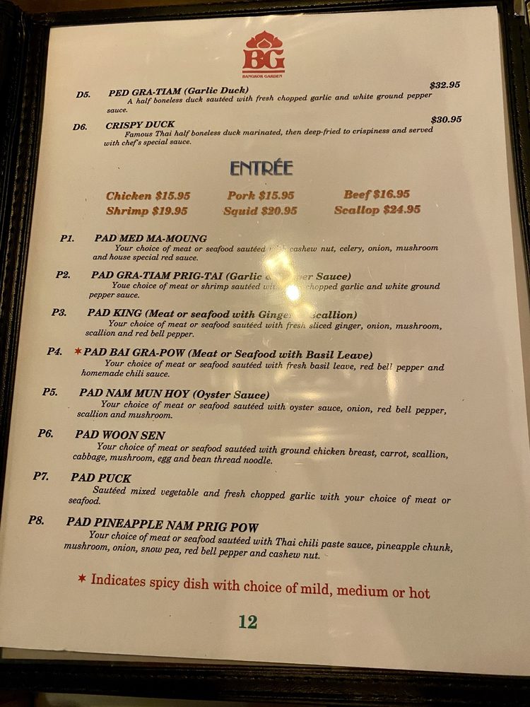 Bangkok Garden Thai Restaurant offers a wide range of traditional Thai dishes in a casual yet inviting setting. Located in Hackensack, NJ, this restaurant provides options for both vegans and vegetarians, as well as ample choices for groups and kids. The menu includes classic appetizers like Thai Satay and Tod Mun Pla, flavorful soups such as Tom Yum Goong Gai, and refreshing salads like Som Tam Malakaw. Customers rave about the generous portions and delicious flavors, with dishes like pad thai and curry puffs standing out. The attentive staff and welcoming atmosphere make this a top choice for Thai cuisine in Bergen County. Whether dining in, ordering takeout, or enjoying delivery, Bangkok Garden Thai Restaurant exceeds expectations with its authentic Thai fare.